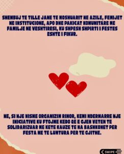 Ne, si një nismë organizim rinor, kemi ndërmarrë një iniciativë ku ftojmë këdo që e gjen veten të solidarizuar me këtë kauzë të na bashkohet për festa më të lumtura për të gjithë.